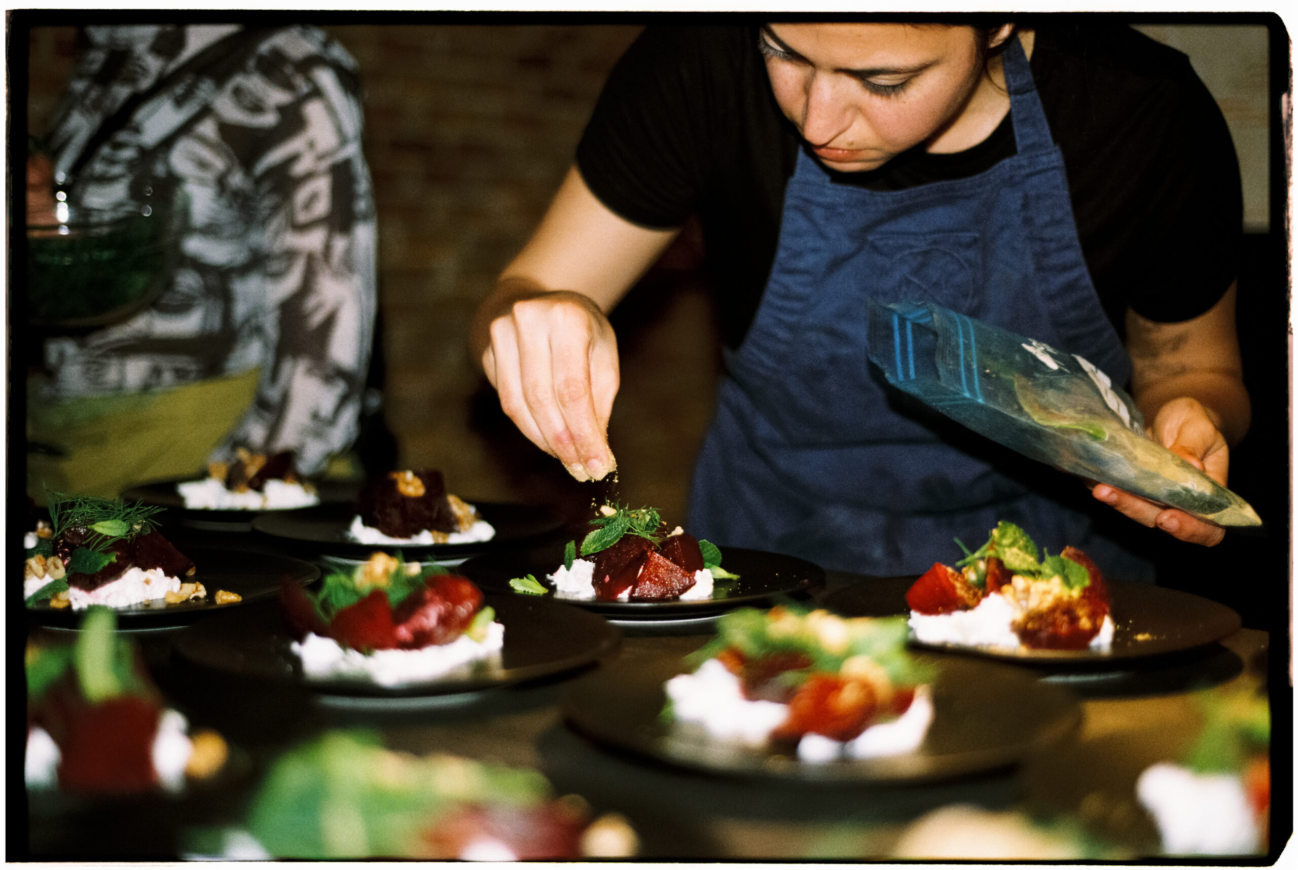 “Han pasado tres meses desde que falleciste y la semana pasada fue la primera cena de la residencia con Bitute. Creé un menú inspirado en mis recuerdos de ti en Irán y en Los Ángeles y desearía que hubieras estado aquí para verlo. No pelé los pepinos como solías hacerlo, lo siento, y definitivamente no deshojé las hierbas tan bien como tú lo habrías hecho. Pero hice lo mejor posible para honrarte para dieciséis personas alrededor de una mesa en Barcelona. Matías tocó música iraní en el altavoz toda la noche, Ana servía vinos griegos, y al final de la cena interpreté una canción que escribí sobre ti, Teherán, el hogar y todo lo demás. No ha sido realmente más fácil en estos últimos 94 días, pero algunos días son mejores, y trabajar en este proyecto ha ayudado mucho. Aunque no soy chef, la comida y el arte son sanadores.”